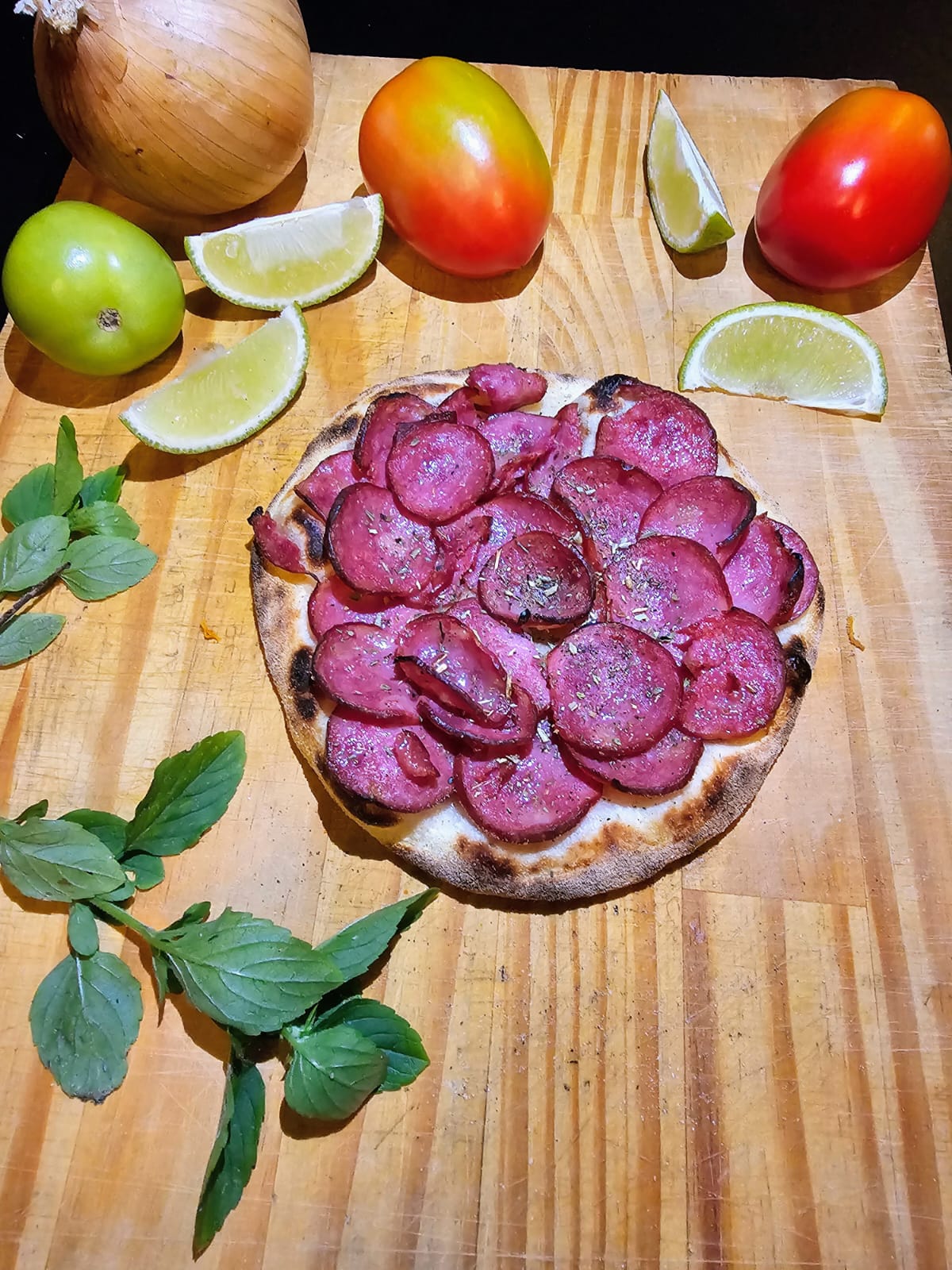 45. Portuguesa Danada45. Portuguesa Danada Presunto, cebola, palmito, mussarela, tomate e parmesãoR$ 12,90